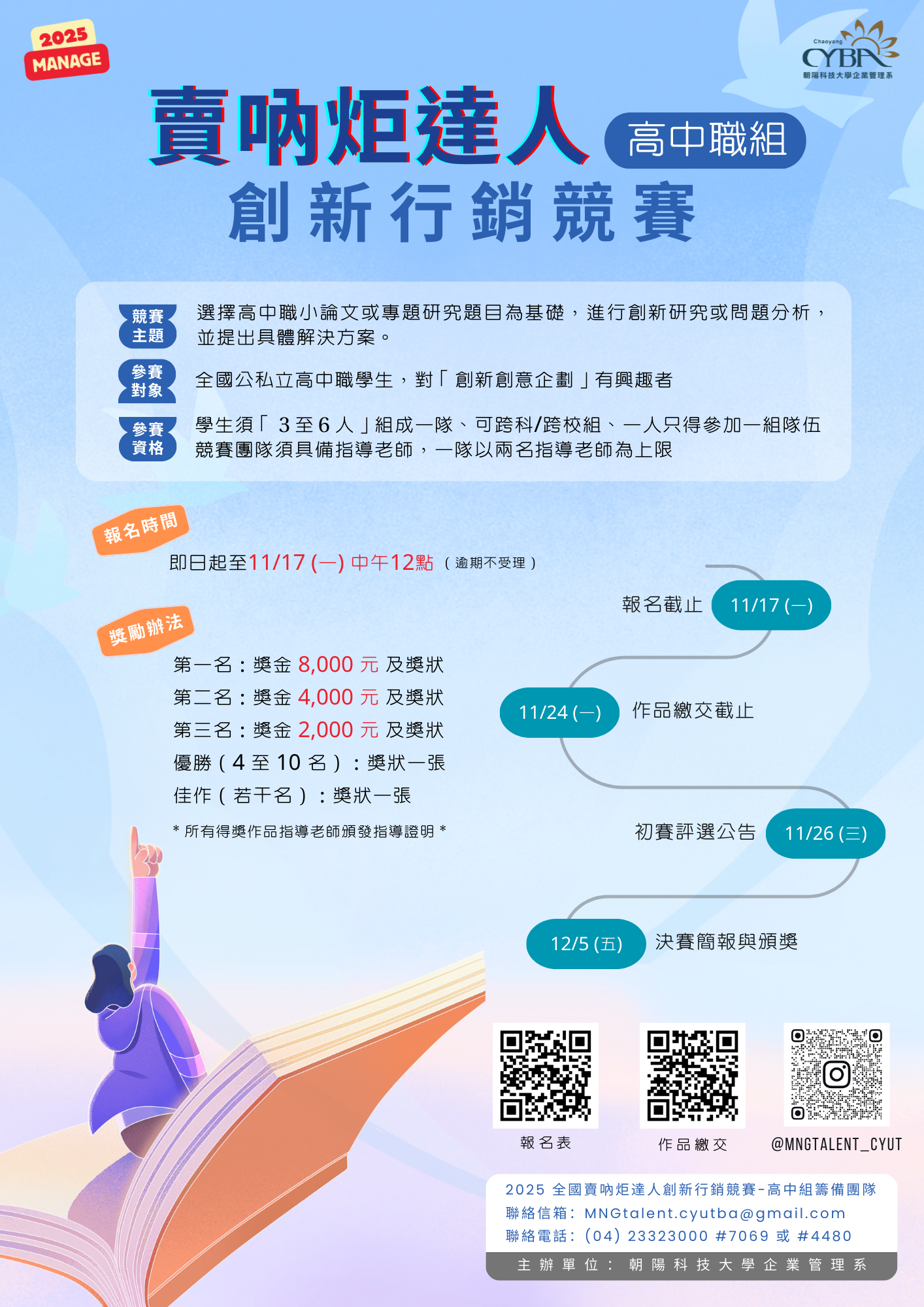 朝陽科大企業管理系主辦之「2025全國賣吶炬達人創新行銷競賽-高中職組」比賽辦法